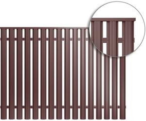Штакетник Twin - вид штакетника с завальцованными краями, отличается увеличенным количеством ребер. Производится с прямым и фигурным резом.